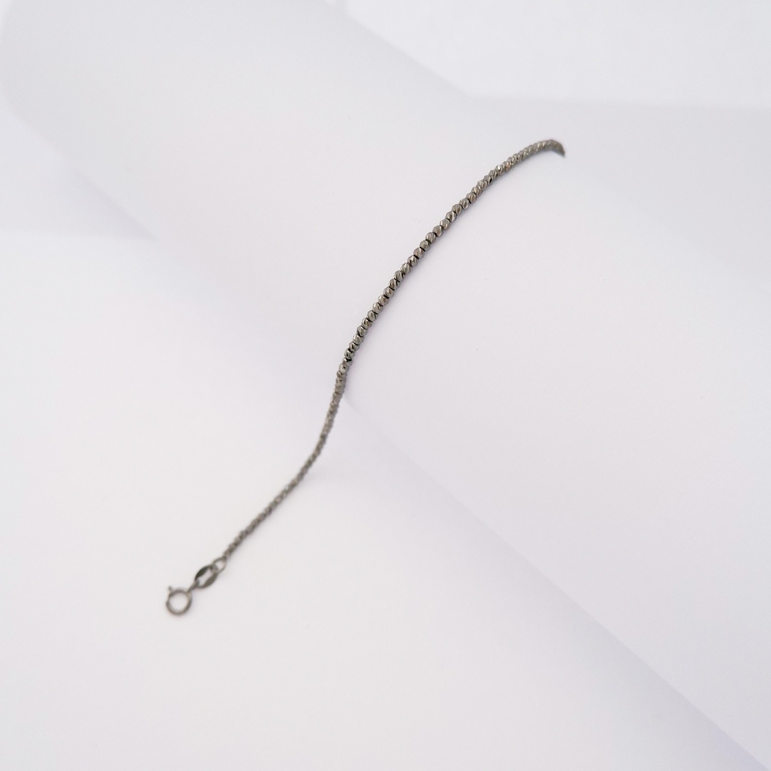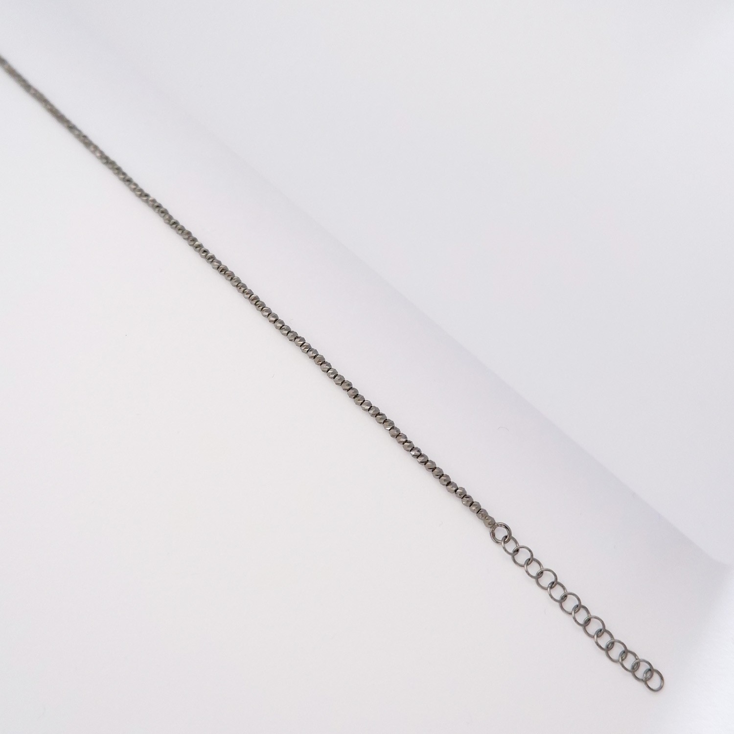 Bracciale in oro 18kt rodio nero con palline diamantate, lunghezza regolabile da 17 a 20 cm circa.