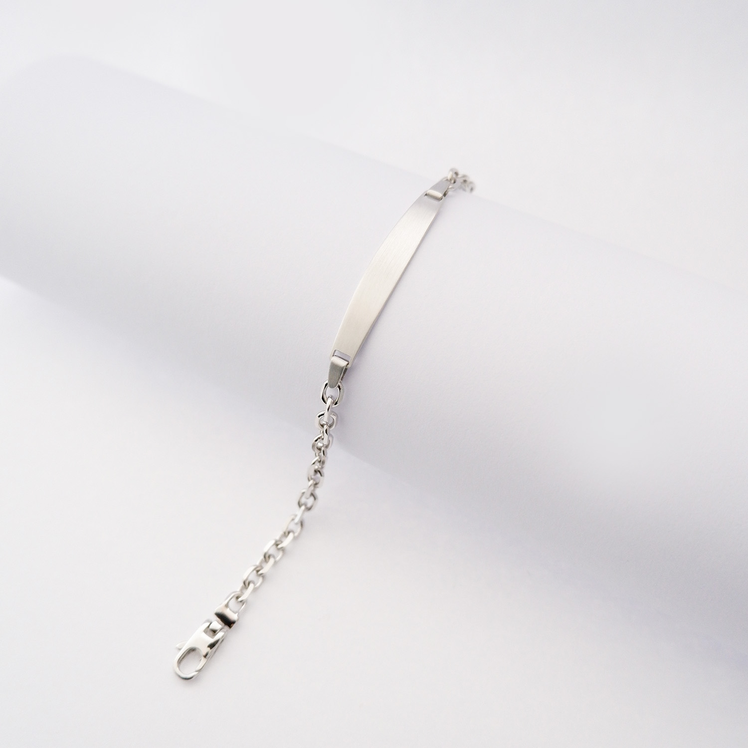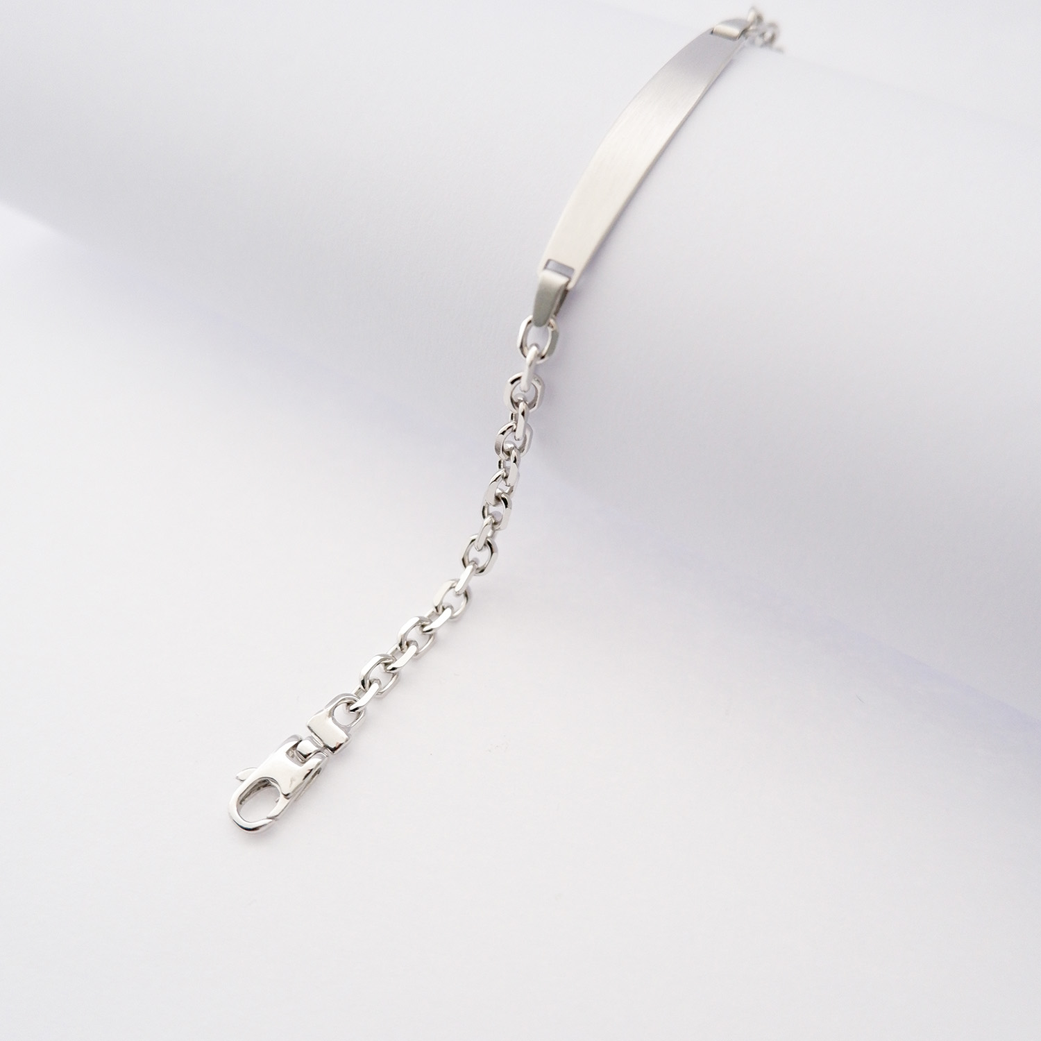 Bracciale Uomo Catena con Targa Satinata in Argento925 rodio bianco. Lunghezza regolabile da 18 a 21 cm circa.