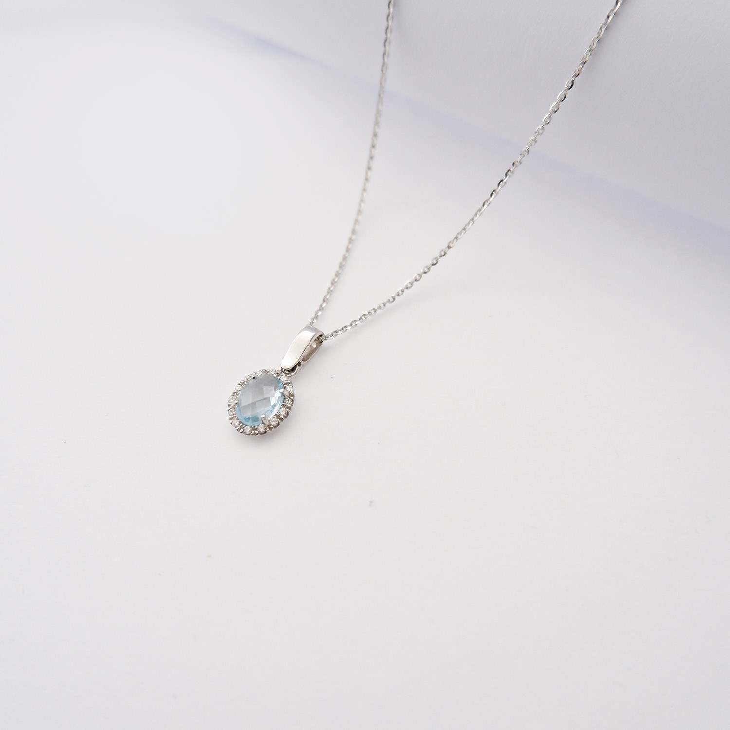 Collana Topazio Azzurro Ovale in oro 18kt e zirconi