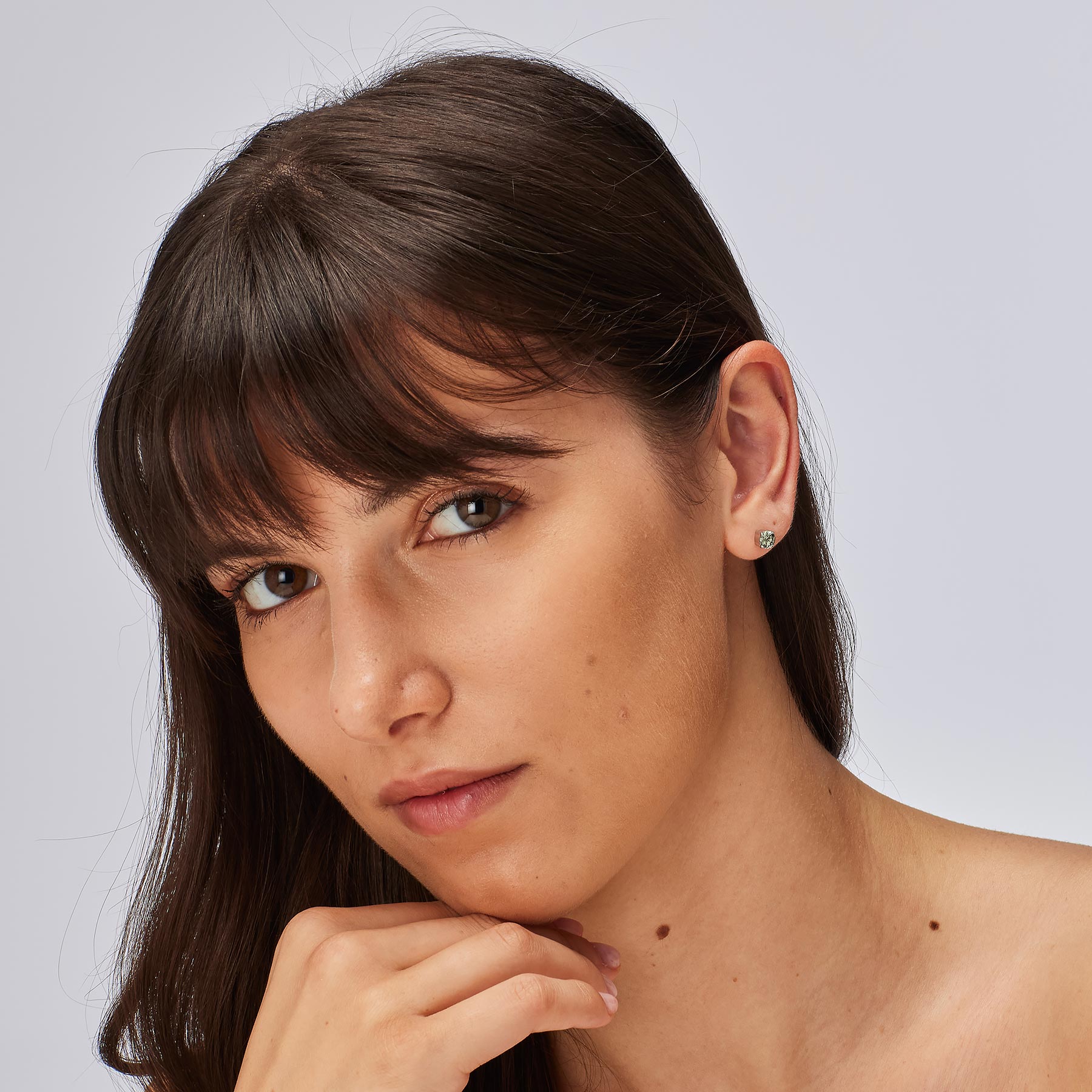 Orecchini a lobo in acciaio 316L e cubic zirconia colore chrysolite.