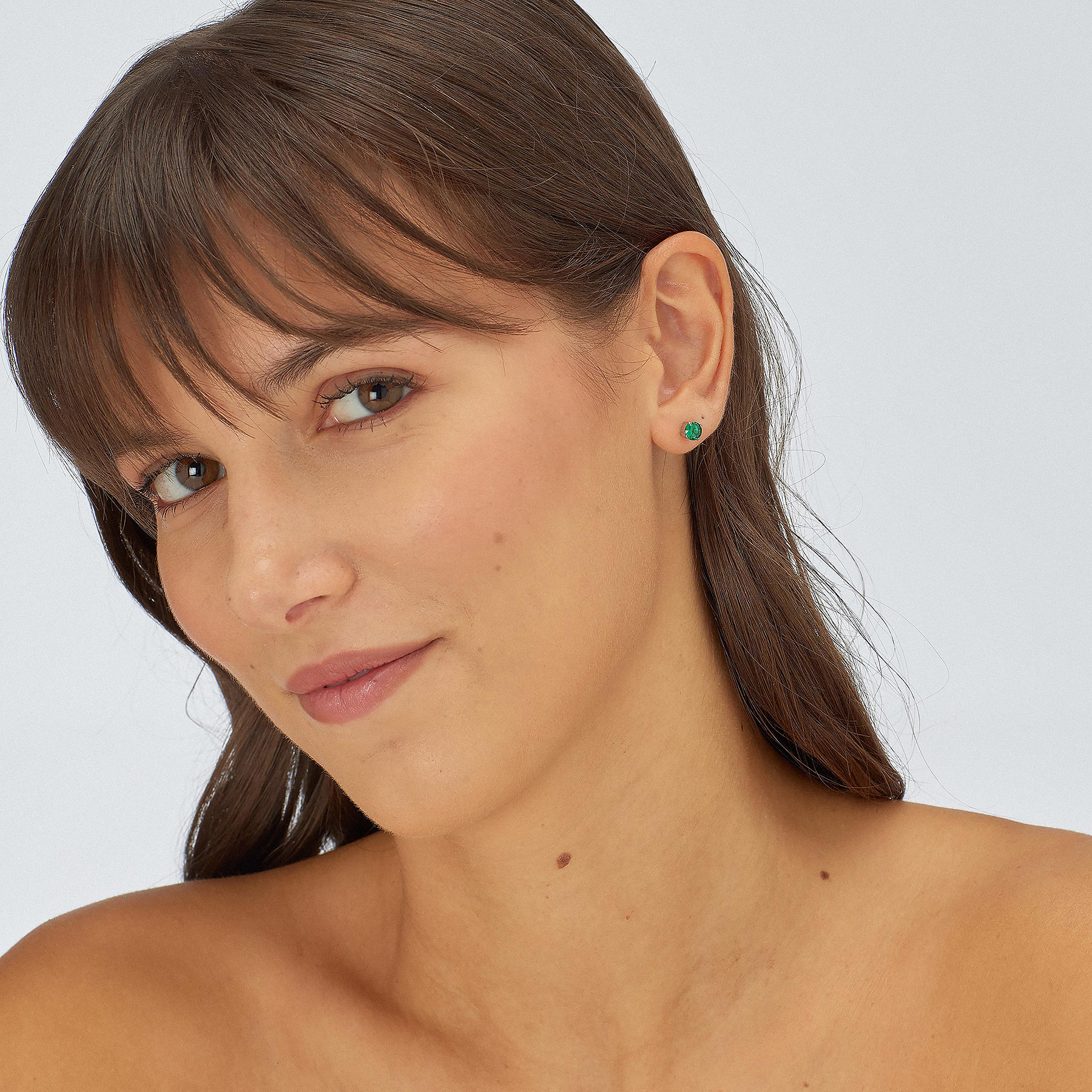 Orecchini a lobo in acciaio 316L con cubic zirconia colore emerald.