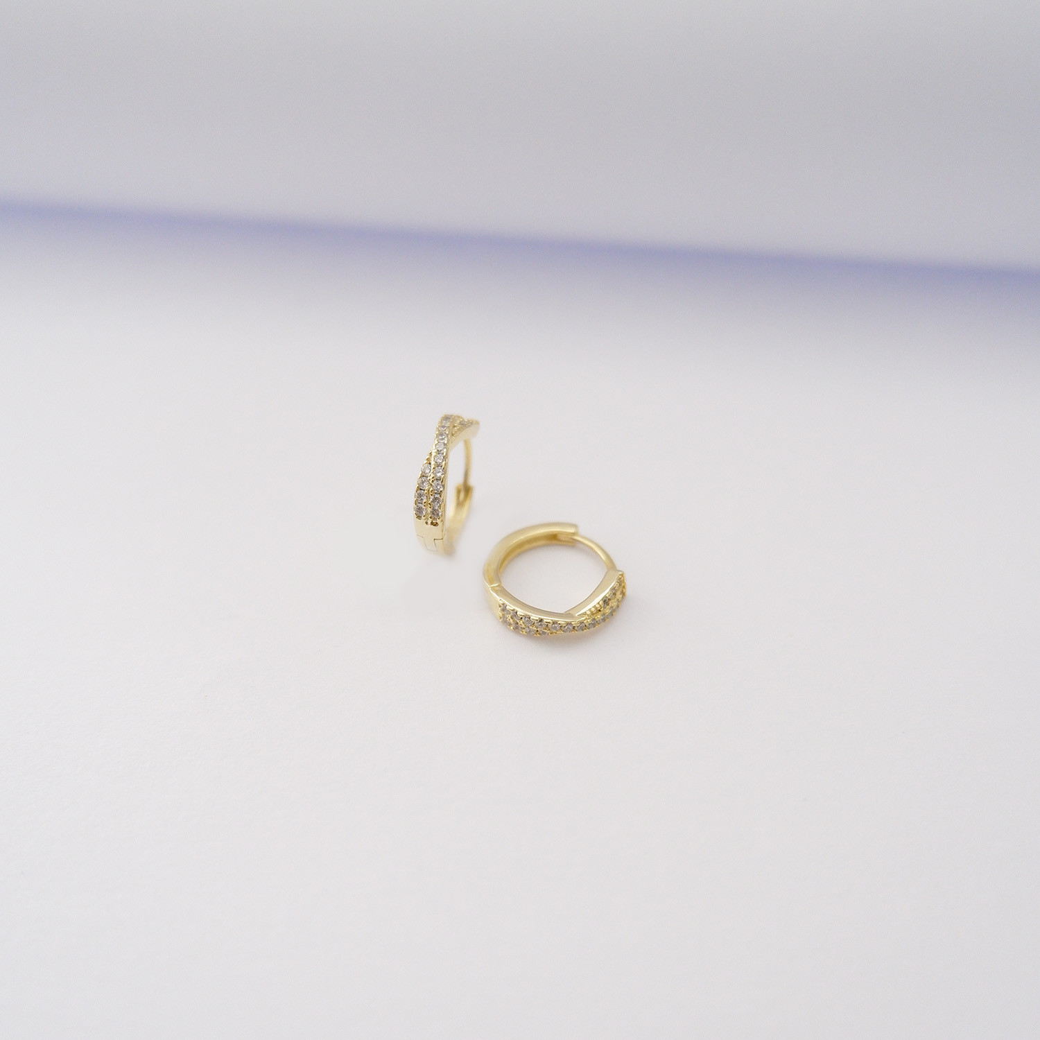 Orecchini cerchietti in Argento925 bagno oro giallo e zirconi bianchi, diametro 1,2 cm.