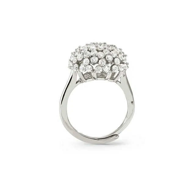 Anello in Argento 925 con rivestimento superficiale in rodio bianco e Cubic Zirconia. Misura regolabile.
