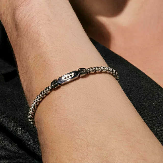 Bracciale in Acciaio 316/304 anallergico e Cubic Zirconia neri. Lunghezza regolabile 21 cm adattabile fino a 18 cm. Altezza maglia: 0,4 cm.