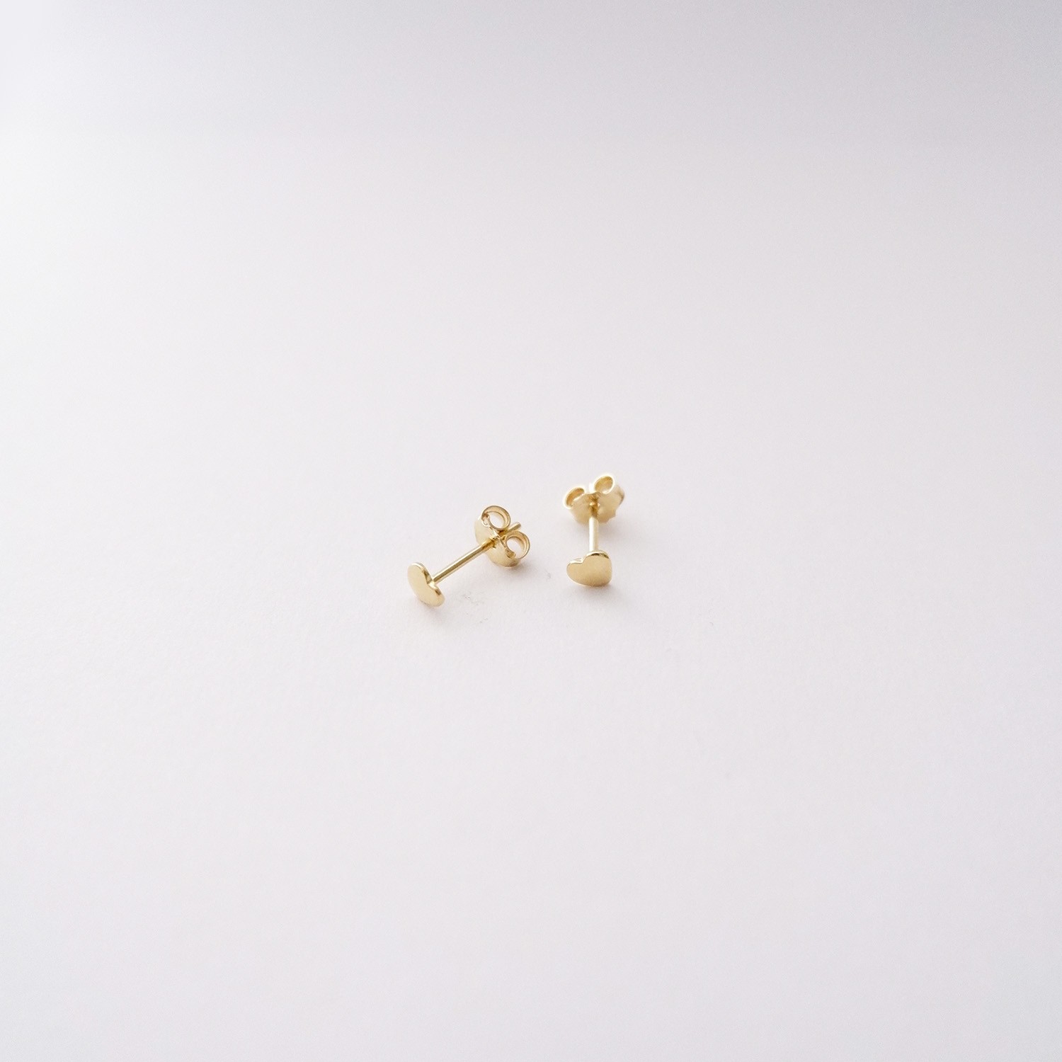 Orecchini cuoricino a lobo in oro giallo 18kt, chiusura perno e farfalla, dimensioni 0,5 cm.