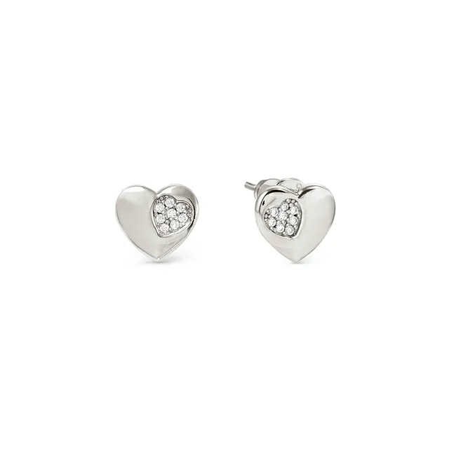 Orecchini Cuore in Argento925 con rivestimento superficiale rodio bianco e Cubic Zirconia. Misura Cuore: 0,8×0,7cm.